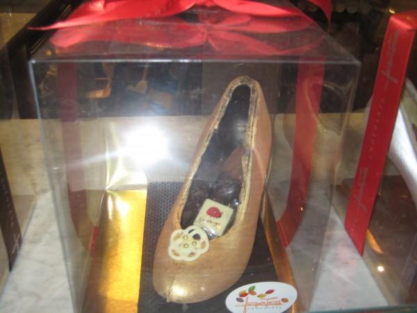 This store had many unique things to buy including this shoe made of chocolate.