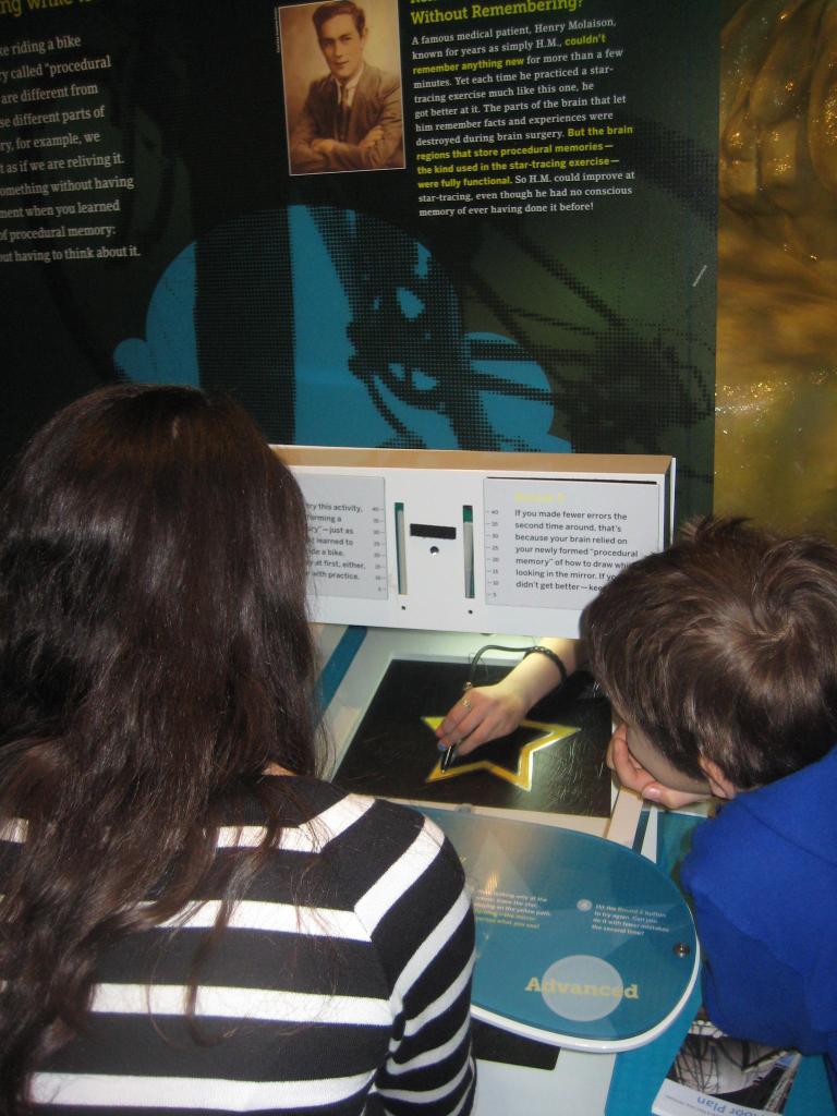We later saw a mini movie of how the different parts of a young dancer’s brain helped her before and during her audition. Throught the rest of this comprehensive show, we walked through sections that included ones concerning our evolving emotions, how we learn languages, and how the 21st century technologies might alter our brains.