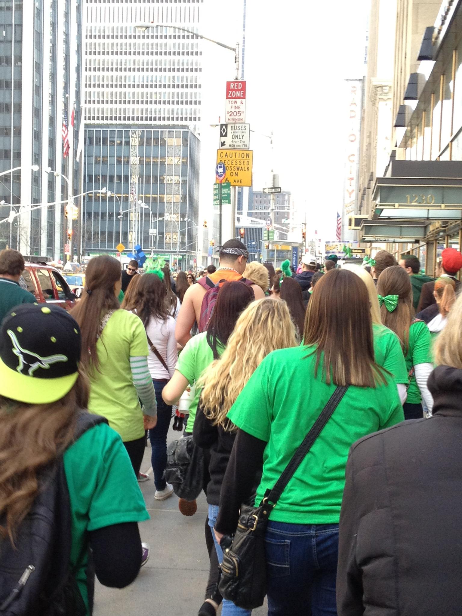 The crowds of green clad parade watchers, so many of whom seemed to be in their 20’s and 30’s, were already building up and, it was getting more and more difficult to navigate the streets.