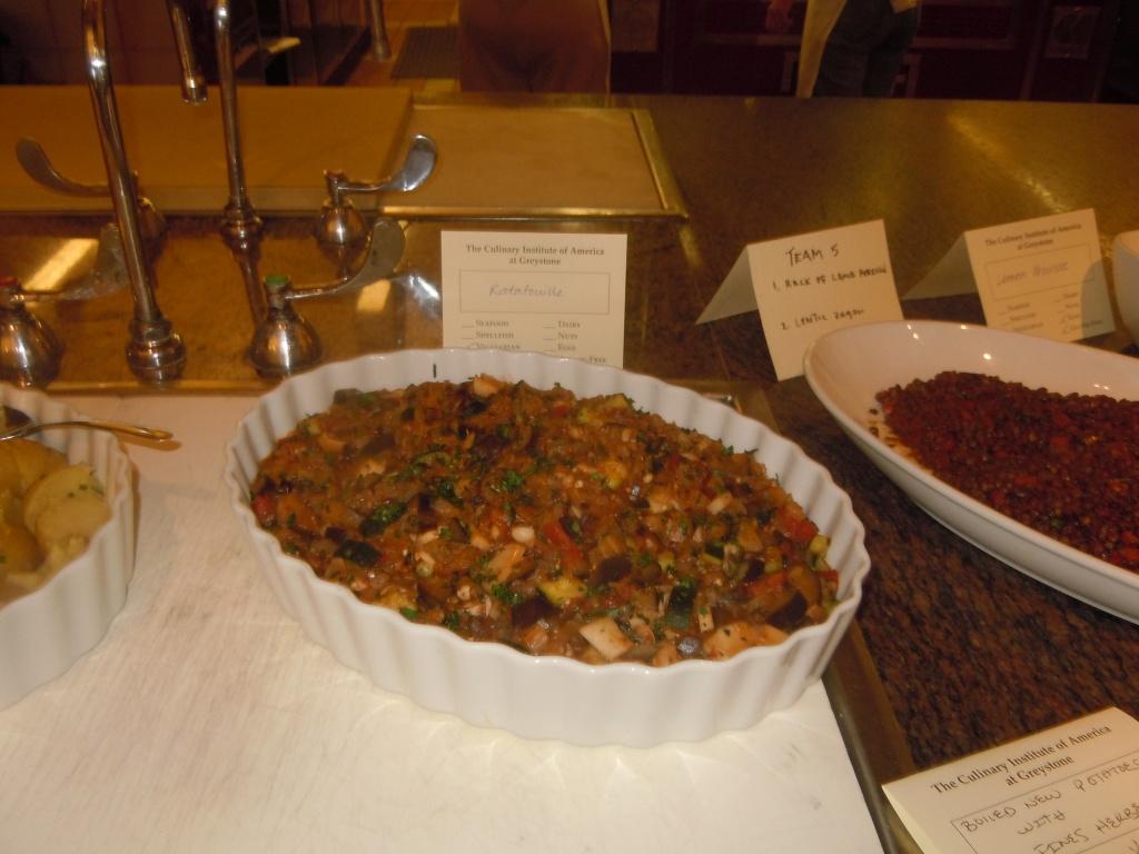 At the end of our cooking class at Greystone, all of the classes presented their completed dishes on a series of tables from which we all tasted.