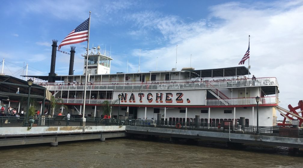 The temperature was expected to dip later that weekend. So we took advantage of our present sunny weather by boarding the city’s only steamboat, the Steamboat Natchez for their enjoyable Harbor Jazz Cruise on the Mississippi River.