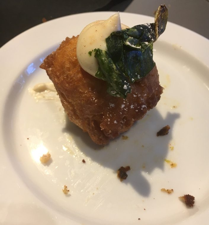 While we were treated to the melodic sounds of a three piece jazz band, we dined on several treats including shrimp tchefuncte, a delicious combination of shrimp, mushrooms, stone ground grits and creole muniere….
