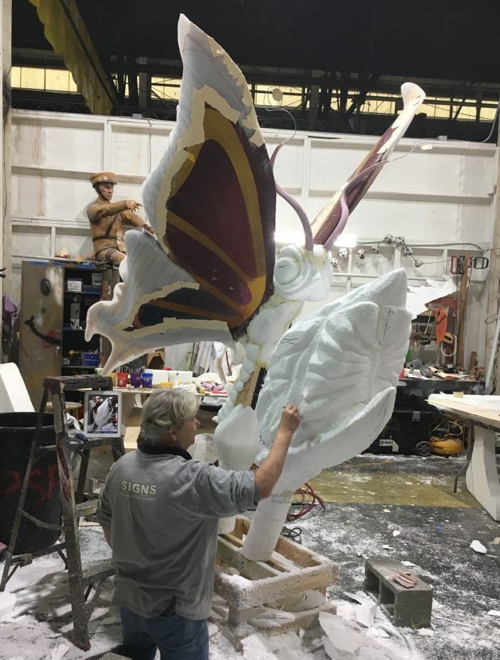 During the tour, we learned that these amazing sculptures are actually made from styrofoam because it’s a less expensive material to use and much more malleable to carve. The pieces are reused again and again for future floats.