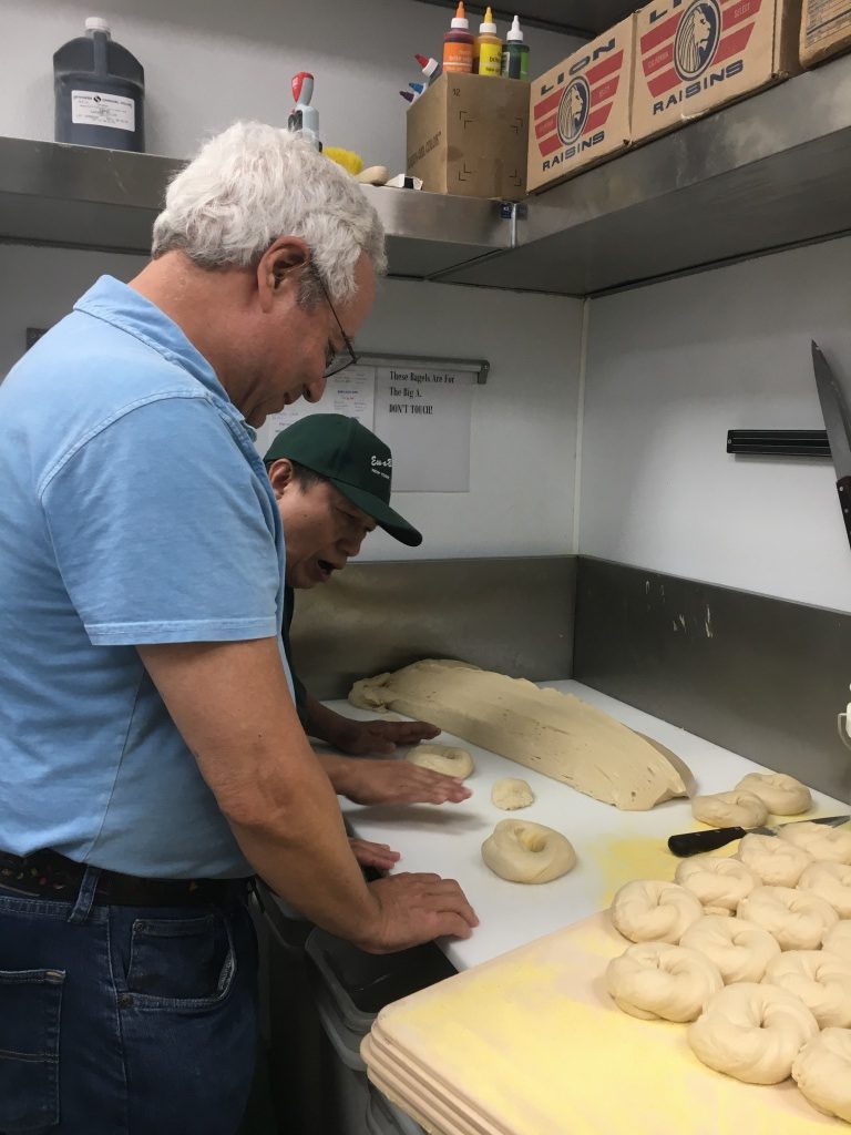 Robert was even able to try his hand at rolling a bagel.