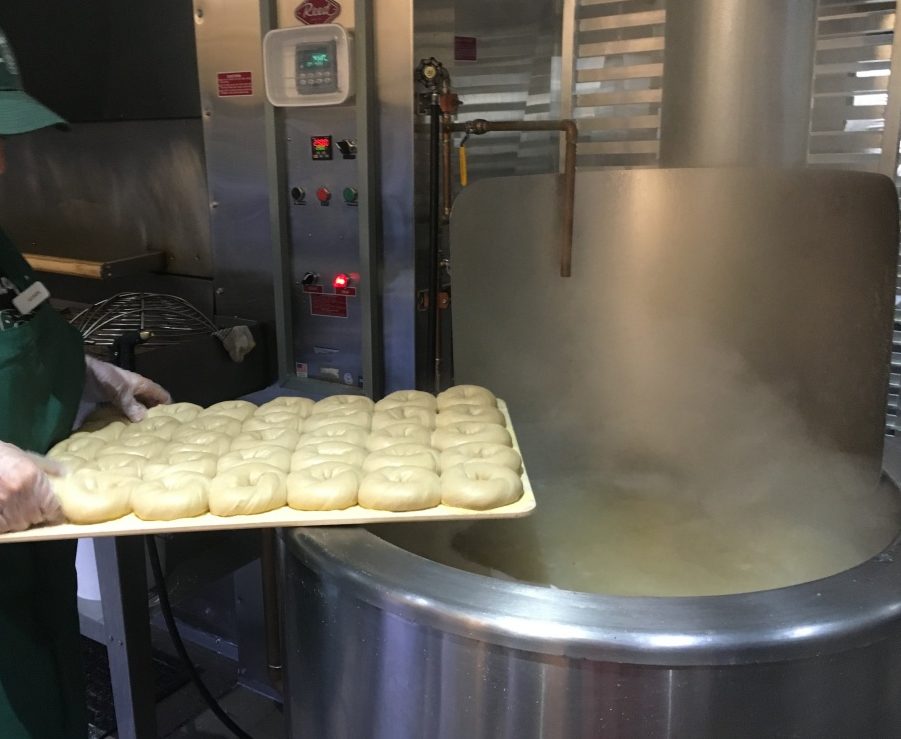 We went behind the scenes and into the kitchen to watch master bagel makers perform their work.